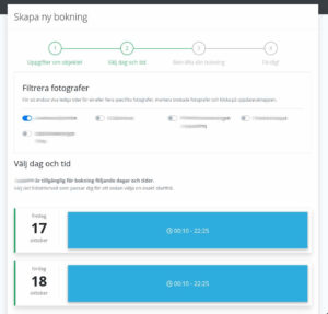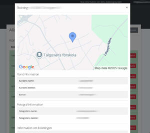 En central del av systemet är den Google Maps-integration som automatiskt beräknar geografiska avstånd mellan fotografernas uppdrag. Detta gör det möjligt att exakt beräkna tillgänglighet i kalendern beroende på var nästa bokning sker – en funktion som både sparar tid och ökar effektiviteten.